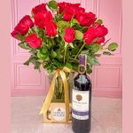 1. Ramo de Rosas x 24 con Frutas y Vino - Aleli
